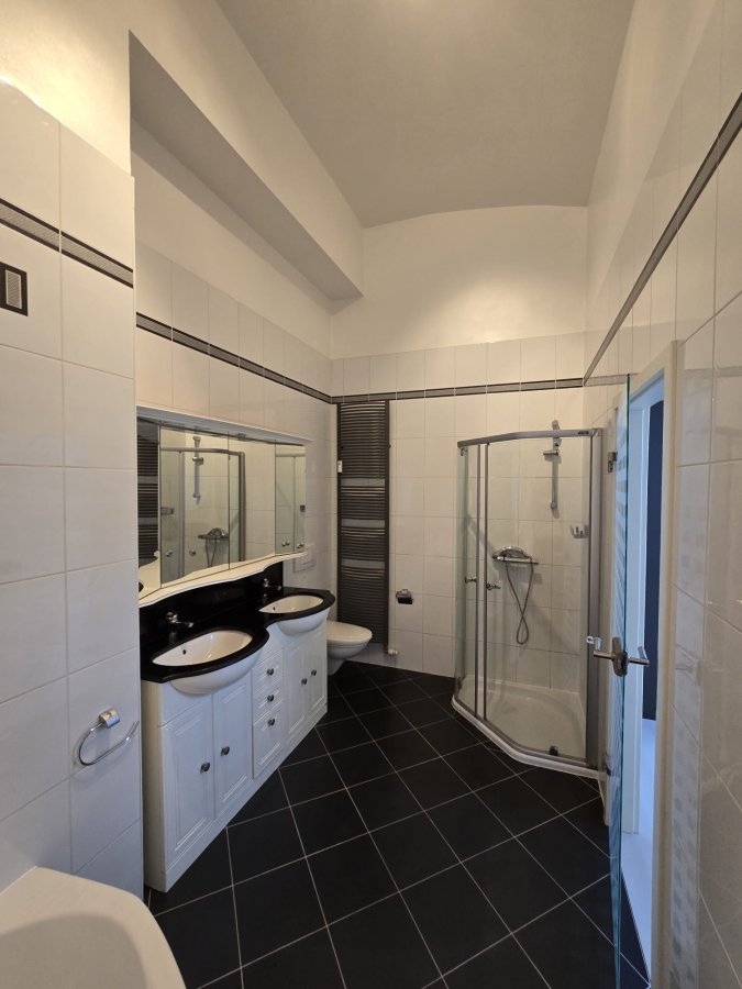 Le duplex dispose d'une cave privée au rez-de-chaussée et d'un garage fermé (porte motorisée, 16 m2) pour une voiture.