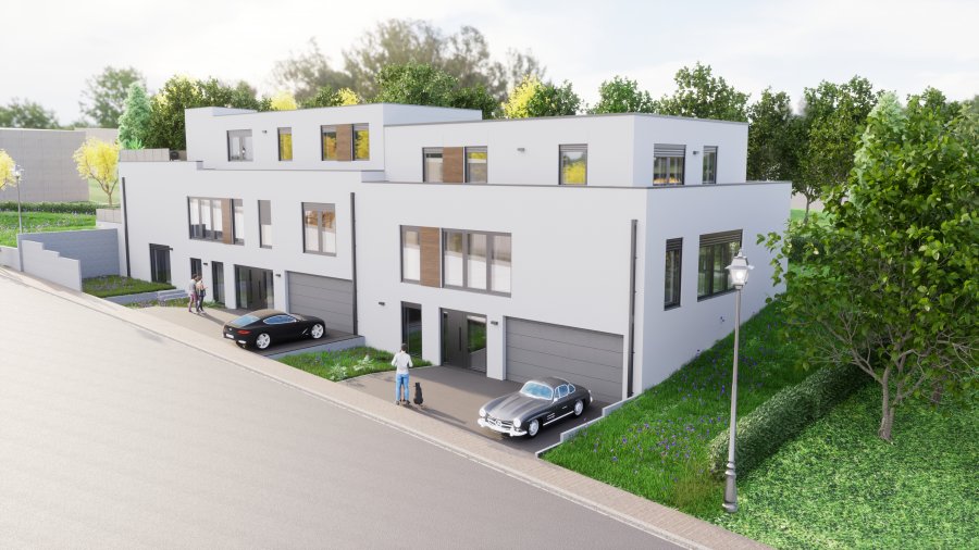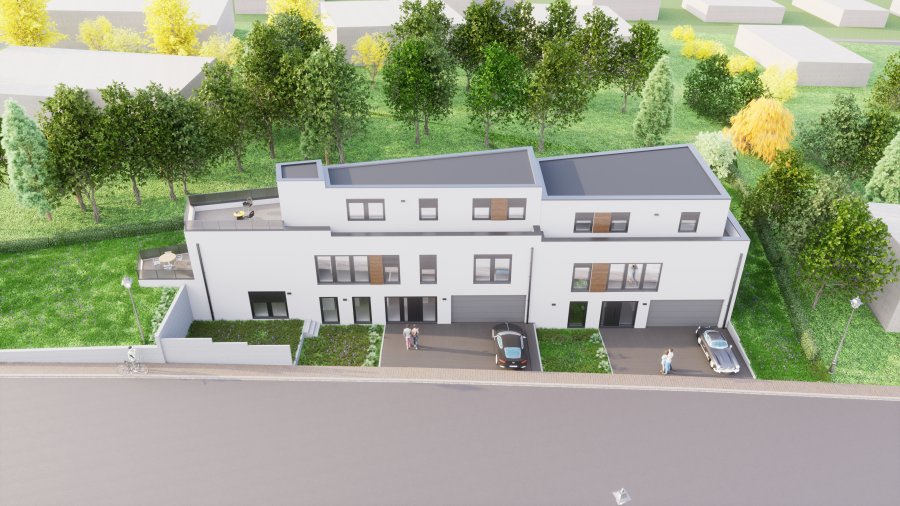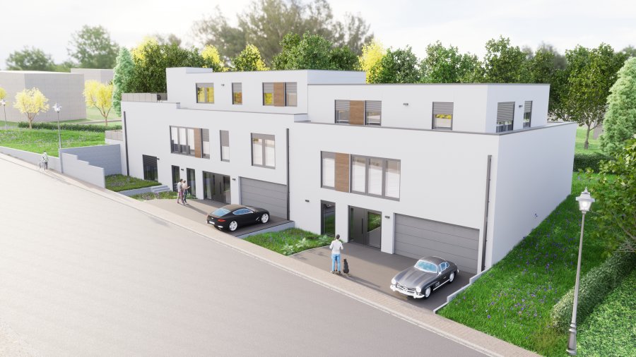 Senningerberg, nouvelle construction: maison unifamiliale jumelée 5 chambres à coucher, 4 salles de bains sur un terrain de 3,51 ares avec une surface brute de 320 m2 et d'une surface habitable de 250 m2 comprenant :- rez-de-chaussée : hall entrée, une grande chambre à coucher, une salle de bains, un espace wellness/sauna, un local technique, une buanderie/cave, un garage pour 2 voitures + 2 emplacements extérieurs